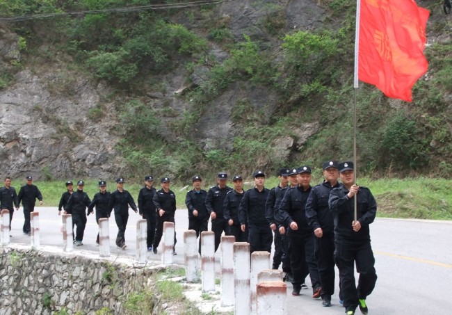 警旗飘飘,军歌嘹亮。4月26日上午,三门峡市中级人民法院法警支队司法警察沿着当年中国工农红军长征时在卢氏的行军路线,迈着整齐有力的步伐,唱着嘹亮的革命歌曲,经过近1个小时的徒步行军,完成了五公里体能拉练。通过拉练活动,全体法警坚定了信念,凝聚了士气,磨砺了意志,锻炼了队伍,进一步传承和弘扬长征精神,锤炼了三门峡中院司法警察不怕困难、顽强拼搏的良好品质。