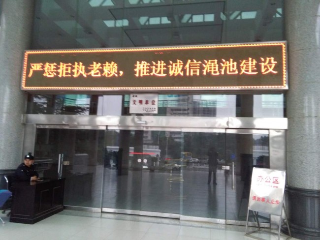 “贯彻中央两办精神,全方位信用惩戒,维护金融秩序”、“ 坚决打击拒不执行判决裁定犯罪行为” ……连日来,一条条极具教育意义和震慑力的宣传标语悬挂在渑池县城各繁华地带和火车站、汽车站、万人广场、高速路口等人口密集场所,渑池县中原银行、农村商业银行等金融机构门前的LED上也持续不断的滚动宣传,起到了良好的社会宣传效果。