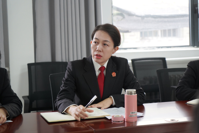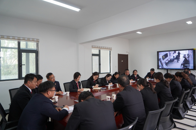 戴蕙一行在千秋法庭了解了千秋法庭的基础设施建设、工作特色和亮点举措等情况,随后与大家进行座谈交流。