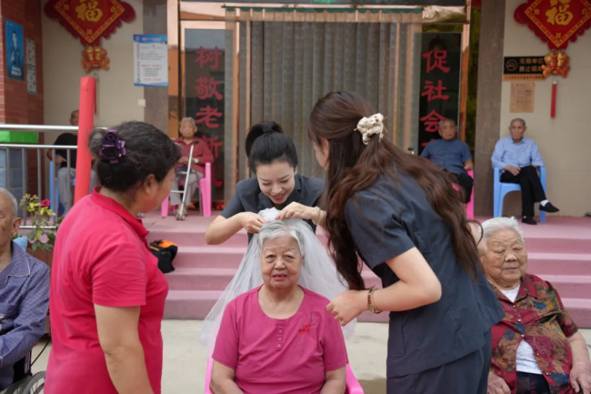 当天,养老院内洋溢着温馨与欢笑。法院干警们小心翼翼地为老人们化上淡妆、披上头纱、整理衣装。许多老人人生中第一次拍摄婚纱照,在镜头前露出羞涩而幸福的笑容。